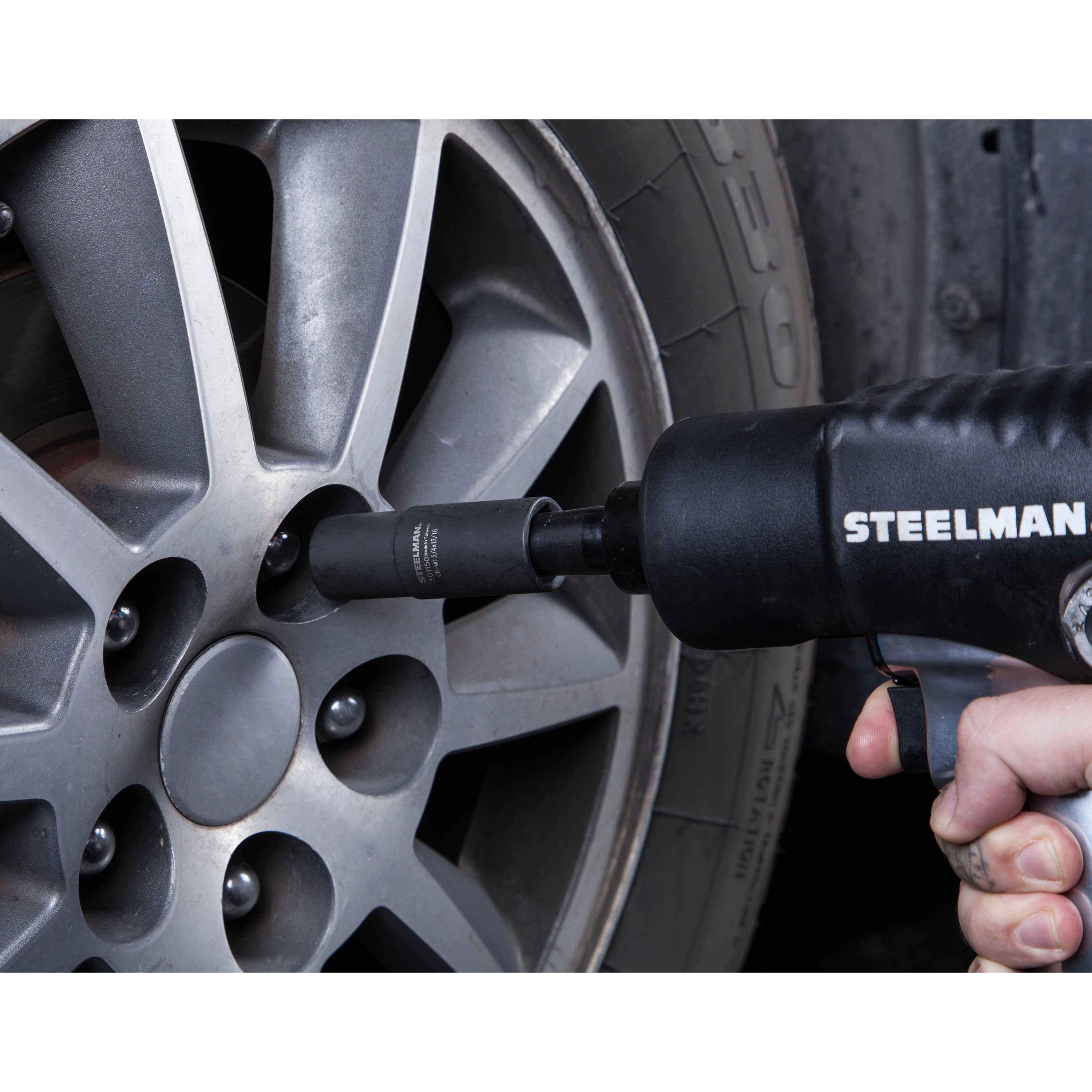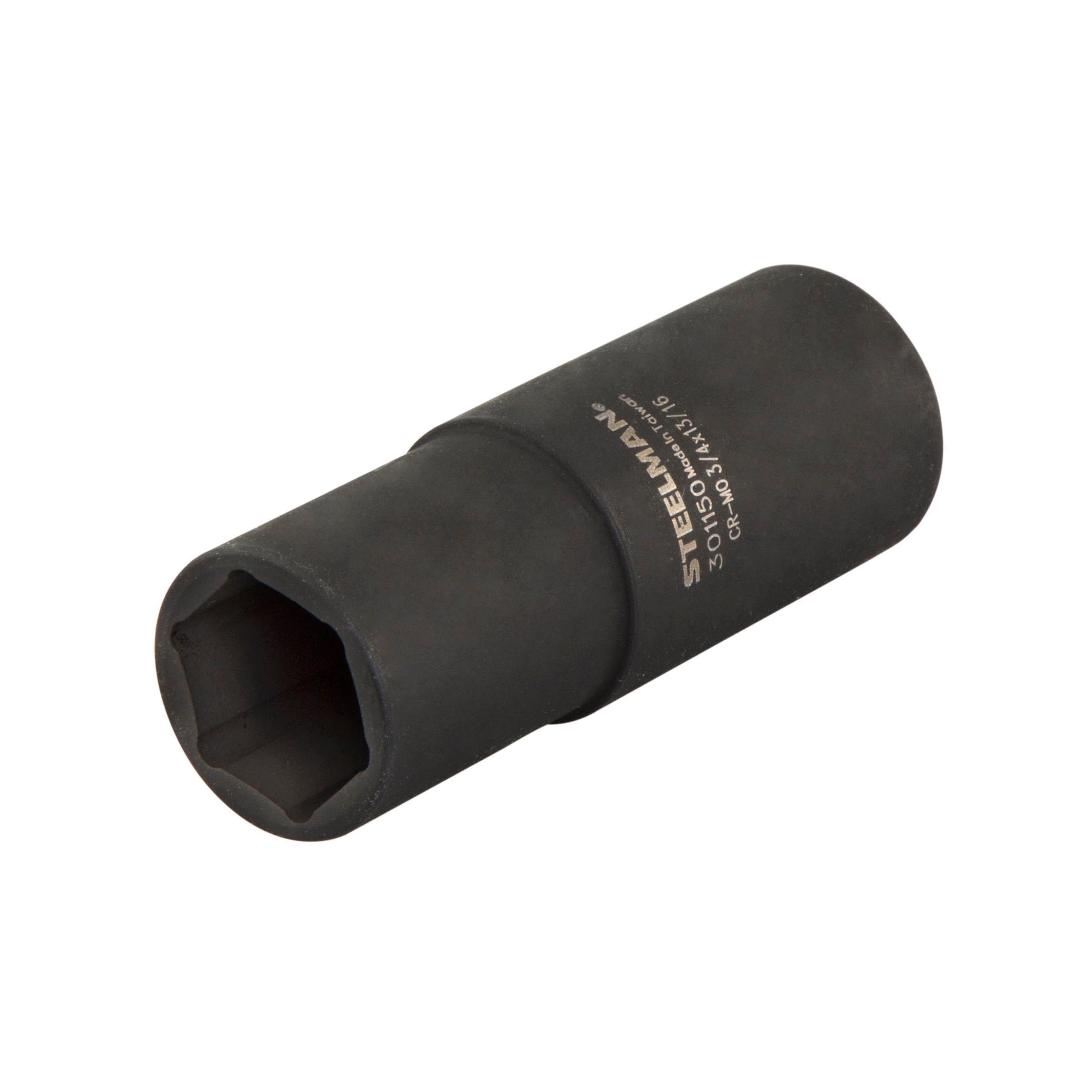 The STEELMAN 301150 1/2-Inch Drive Impact Flip Socket, 3/4-Inch x 13/16-Inch was designed to save you time. This dual-ended, 6-point SAE flip impact socket allows you to work on both 3/4-inch and 13/16-inch lug nuts or fasteners without having to constantly switch sockets. It’s constructed of hardened chromoly steel to withstand high-torque applications. Fitting easily over an impact extension or onto an impact wrench's extended anvil this socket's recessed edges provide the most accurate fit possible, gripping fasteners by the sides and not the edges which results in reduced slippage and rounding/fastener damage. Whether you’re a professional mechanic or just love to work on your own cars and vehicles, this flip impact socket is a must for working efficiently!