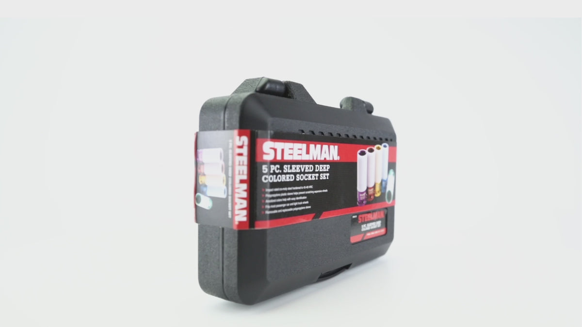 When you've invested in new wheels the last thing you want is to scratch or damage them the first time you remove them. Protect your investment by using the right tools for the job, the STEELMAN 95615 Socket Set is a 5-piece set of specialized metric and standard sockets that each have two polyethylene protective features as buffers between their durable chrome moly steel construction and your wheels. An outer sleeve protects your wheels while an insert protects the faces of the lug nuts. At 85mm long these 6-point sockets can reach lug nuts seated in the deep recesses found on some types of wheels. The anodized finish is also color coded for each size to allow for easy identification as well as providing increased rust and corrosion resistance. The blue socket is 17mm, gold is 19mm, red is 21mm, purple is 13/16-inch, and green is 3/4-inch. Durable construction is impact rated and works with any 1/2-inch drive impact wrench or breaker bar.