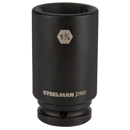 Every mechanic knows that having a reliable set of tools can make your life easier when working on heavy-duty vehicles and equipment. The STEELMAN PRO 79270 3/4-Inch Drive 6-Point Deep Impact 1-3/8-Inch Socket is ideal for use in performing maintenance, repairs and service on large trucks and tractor trailers, farming equipment and tractors, oilfield and construction equipment, and mass transit vehicles. Made from drop forged and heat treated chromoly steel, this socket features a ball detent recess on the 3/4-inch drive end to help hold it securely onto ratchets, air wrenches, adapters, and extensions. The 6-point shape grips the sides of fasteners and not the corners, reducing wear and the chance of rounding the fastener and the deep well design allows easy reach of nuts on extended threads and recessed bolts. The socket features a rust and corrosion resistant black phosphate protective coating with laser etched size callouts and markings. Rated to withstand up to 150% of ASME torque requirements for impact tools, this socket can handle tough use in any professional shop / garage, home workshop, or on the work site.