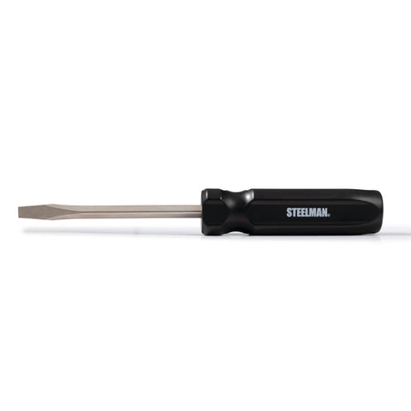 From cabinets, electronics, furniture, and toys around the house to cars, trucks, and other projects in the workshop or garage there is constantly something in need of repair that calls for a screwdriver. With the STEELMAN 31042-KH 1/4-Inch x 4-Inch Slotted Tip Screwdriver with Fluted Handle in your tool box you can conquer any of these projects. This general purpose tool is made with a durable and heat-treated alloy steel shaft that is set into a molded plastic handle. A chrome plating on the shaft of the tool provides it with increased rust and corrosion resistance while the molded handle has a fluted design to provide a secure grip for increased rotational torque. The tool's shaft measures 4-inches long from the base of the handle to give you maximum reach when going after fasteners found deep under dashboards and in engine compartments or set in tunnel-like recesses on electronics and appliances. Backed by a limited lifetime manufacturer's warranty.