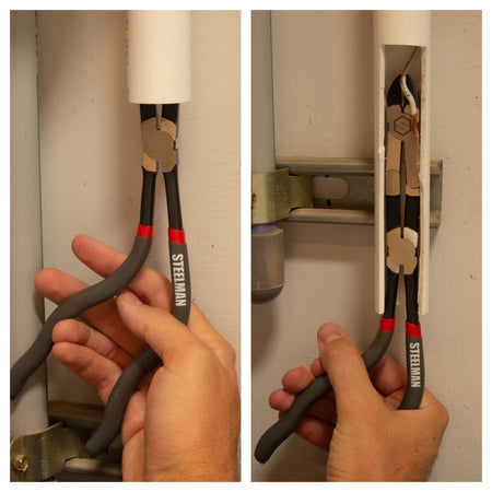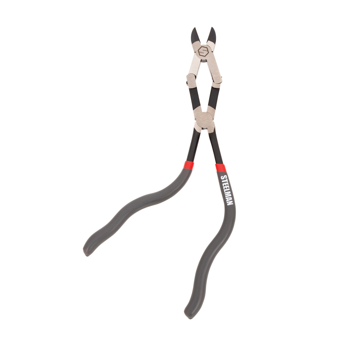 Reach deep and cut zip ties, cables, wires, and more with the STEELMAN 61111 11-Inch Long Double-Joint Pistol Grip Diagonal Cutters. These drop forged alloy steel cutters are crafted with not one but two articulating joints that open together to allow easy access to deep and narrow spaces too small for a regular pair of wire cutters. The jaws feature induction hardened cutting surfaces to allow the edge to retain its sharpness and give your tool a longer useable life. The jaws are able to open to a maximum width of 3/4-inches. The tool's ergonomic, pistol-style grip fits comfortably in your hand and features dual layer plastic dipped handles for a secure hold when in use. Backed by a limited lifetime warranty.