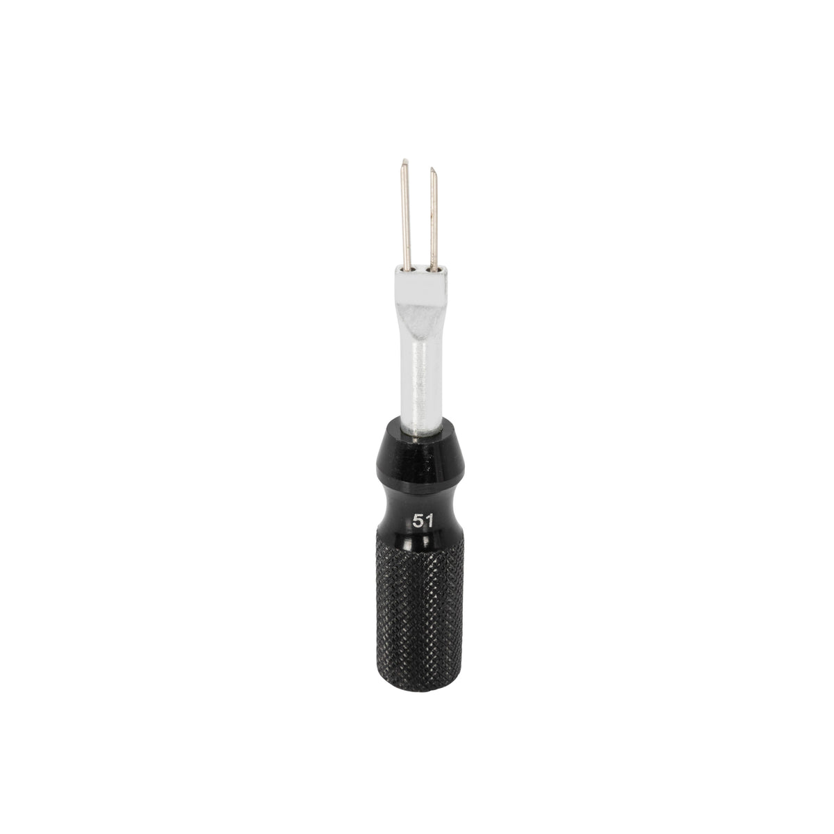 - TIP STYLE - Dual pin tool has a pair of 2.8mm prongs sized to fit flat terminals and measures 3.23-inches in overall length