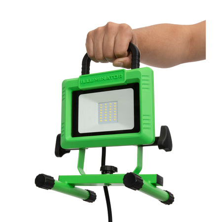 Whether you need temporary lighting on the jobsite, a little additional lighting in your garage for that new project, or just want to flood your backyard with light for an evening barbecue, the Illuminator WL-2000 (42572) 2,000-Lumen LED Work Light is the perfect solution. It features an array of 28 energy-efficient SMD LEDs that are rated to deliver up to 2,000 lumens of superior area illumination. The H-shaped adjustable stand allows the light to be rotated 360-degrees and tilted up to 120-degrees to direct the light where you need it most. In addition, the base is fully removable to allow the light to be temporarily mounted to poles, wall studs and similar locations. Thanks to the durable cast-aluminum casing and impact-resistant glass lens, this work light can easily withstand harsh working environments where it might suffer the occasional knock, bump, or tumble. The 5-foot cord is 18/3 SJTW rated so it can stand up to medium duty outdoor use and is resistant to water, acids, chemicals, solvents, and oil. The stand features nylon feet to help protect vulnerable surfaces like tile and hardwood, making this light suitable for indoor as well as outdoor use.
