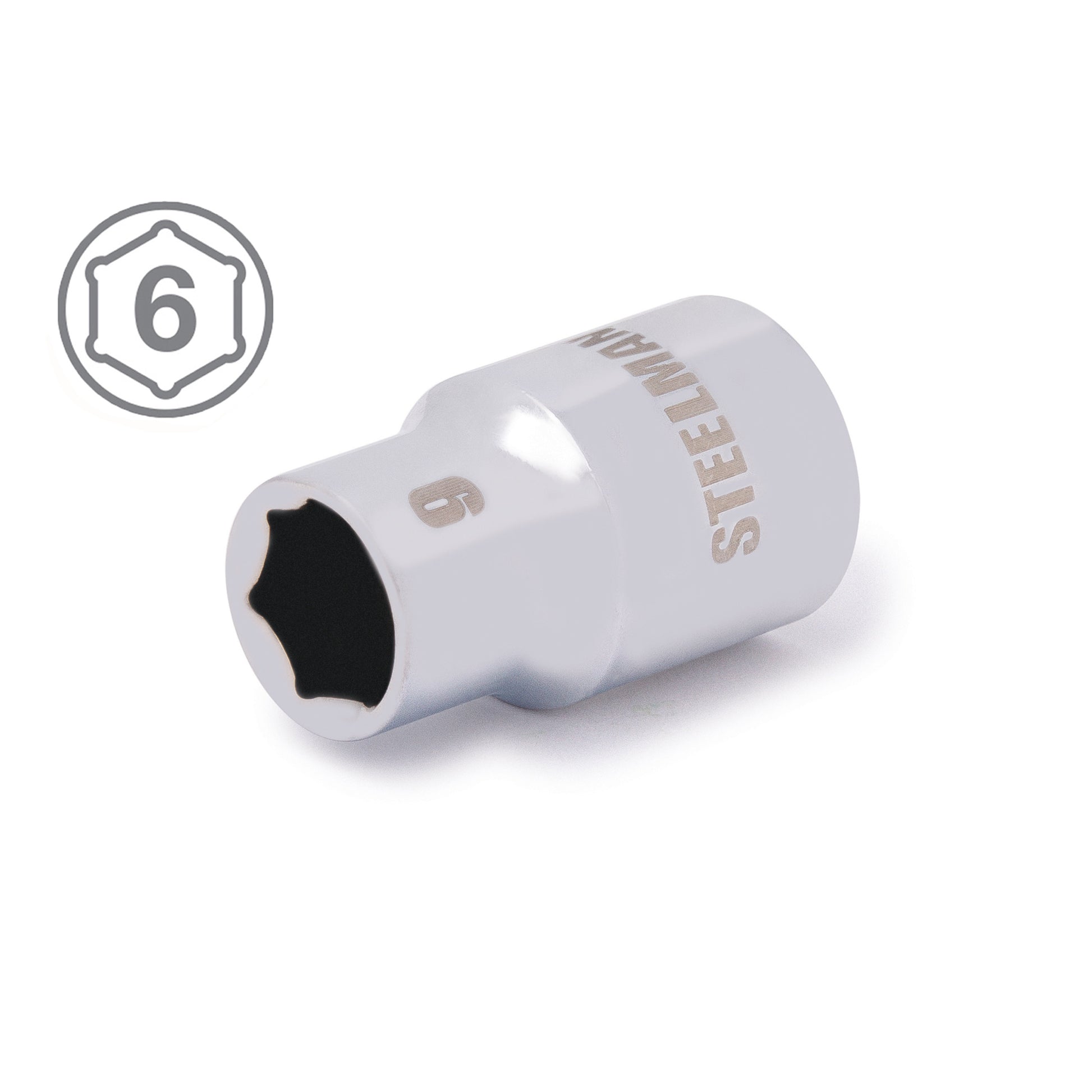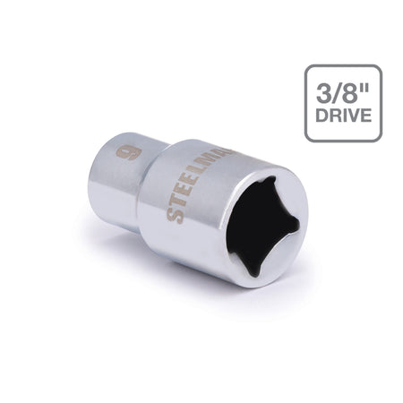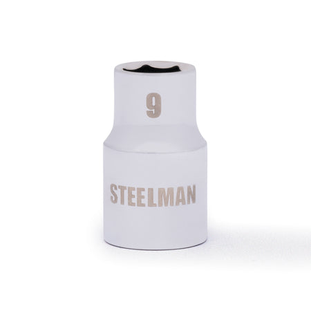 If you need a socket you can depend on, be sure to find a home in your tool box for the STEELMAN 78192 3/8-Inch Drive x 9mm Shallow 6-Point Metric Socket. Constructed of durable heavy-duty chrome vanadium steel, this socket has the strength required for high torque jobs and will fit onto any 3/8-inch drive ratchet, torque wrench, extension bar, or adapter. The socket features a rust and corrosion resistant high polish chrome finish that not only looks good but is easy to wipe clean of dirt, oil, and grime. The socket's 6-point design grips the sides of fasteners and not the corners, reducing wear and the chance of slippage or rounding the fastener. Easy to read size markings are laser etched onto the steel making it simple to identify the socket you need without the worry that the markings will wear away or rub off with use. Rated to meet or exceed ANSI / ASME performance requirements for hand tools, this socket can handle tough use, whether it is in professional garage fixing car engines or at home repairing furniture and appliances.