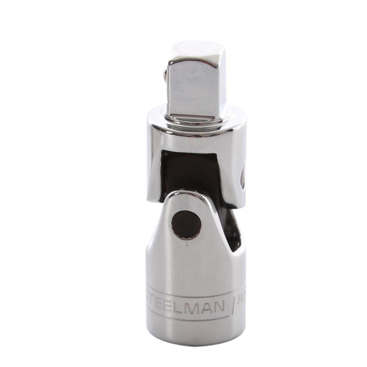 When you need to get to nuts and fasteners that are located at awkward angles or partially hidden by obstructions, look no further than the STEELMAN PRO 78187 3/8-Inch Drive Universal Swivel Joint Adapter. This handy angle adapting tool fits 3/8-inch drive ratchets, torque wrenches, sockets and other accessories to give you near unrestricted access to fasteners. Made from durable chrome vanadium (Cr-V) steel, this adapter features a rust and corrosion resistant polished chrome finish. The swivel feature allows true 360-degree rotational access fasteners at a range of angles. A spring loaded detent ball on the male end keeps attached extensions or sockets snugly in place during use. A recess on the female end fits similar retaining balls on ratchets and extensions to keep the adapter firmly attached. Backed by a lifetime limited warranty.