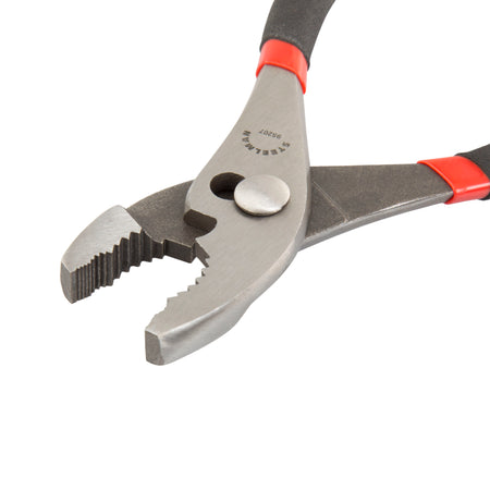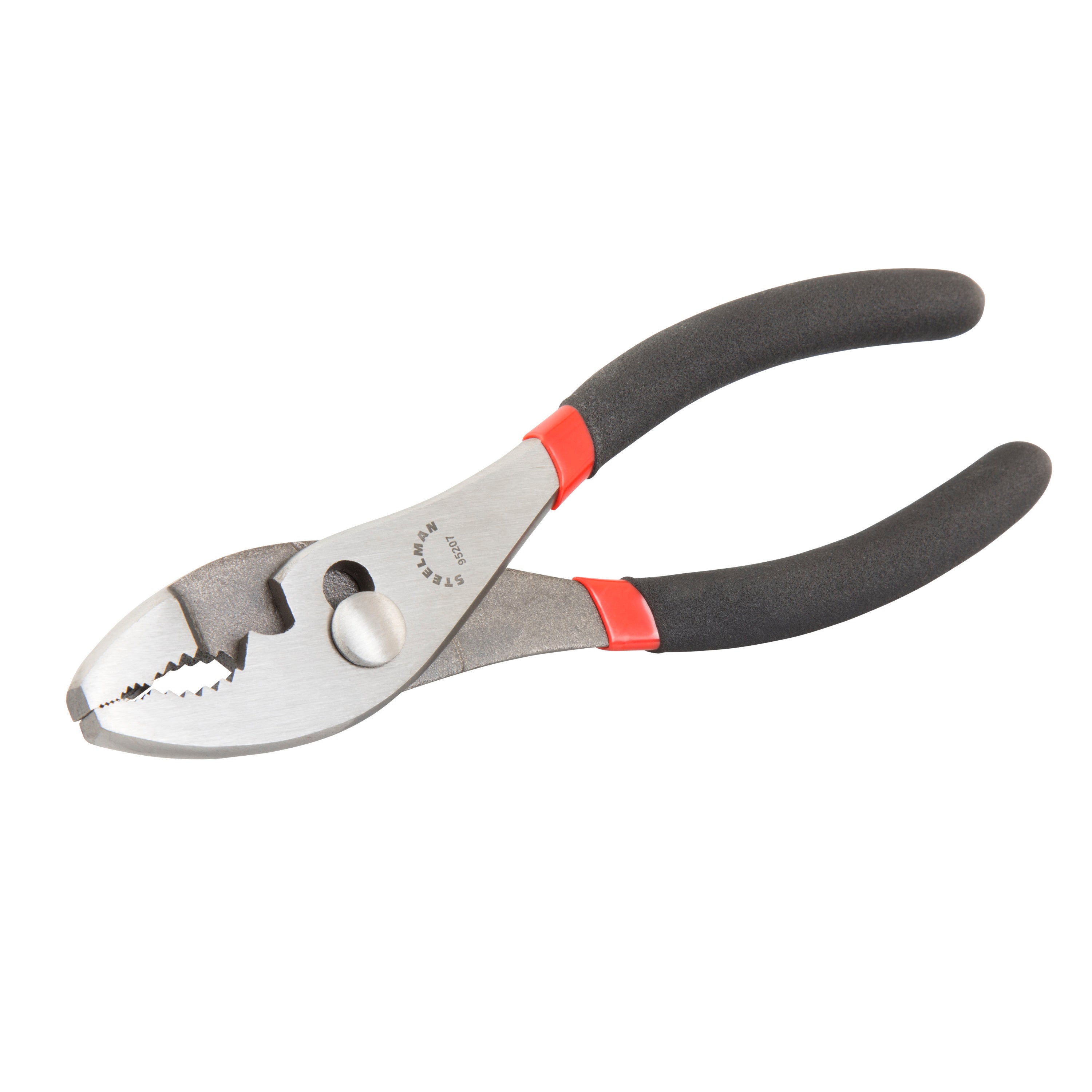 Get a grip with the STEELMAN 95207 6-Inch Slip Joint Pliers. Made of dependable and heavy-duty carbon steel this durable tool has dual layer dipped handles with a coarse texture to provide a comfortable and secure grip during use. The dual position adjustable joint design allows for easy gripping of large and small objects and the serrated jaws feature both fine and coarse teeth to provide optimum hold on objects. The base of the jaws features a built-in set of wire cutters to cut through both insulated and non-insulated copper and aluminum wires as well as smaller gauge braided cable. Built to meet or exceed ASME hand tool standards these compact, 6-inch long pliers are backed by a limited lifetime manufacturer's warranty.