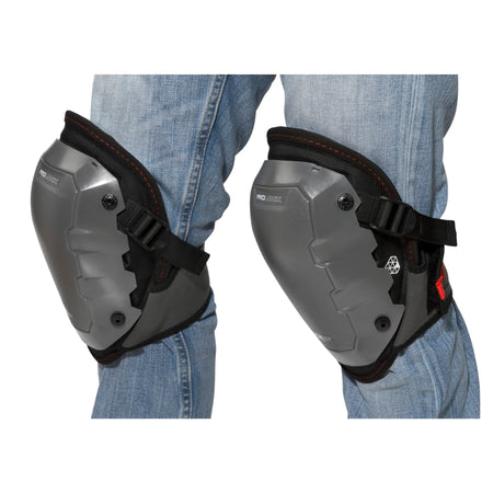 Whether you work in the roofing or flooring industry or are just looking for an aid working in the garden or on home improvement projects, this pack contains a pair of knee pads and a pair of patented attachable non-marring caps that will help protect your most important asset; you! The knee pads are designed to be hard-wearing; the heavy duty 1680D polyester fabric has been tested up to 7,000 abrasion cycles so you can feel confident knowing they can hold up against a wide variety of surfaces ranging from construction site concrete and subflooring to at home hardwood and tile. The compression gel core is further padded with EVA foam to help to both absorb hard impacts and disperse bodyweight. The inner layer's lightweight, water-resistant compression gel and EVA foam construction pads and conforms to your knees for a comfortable fit and the single neoprene strap design makes them a breeze to put on and take off. When working on delicate surfaces, the included non-marring caps can be attached using the built-in twist-to-lock anchors to add an additional layer of protection to your knee pads. These included caps are made of flexible TPE copolymer to shield delicate surfaces like hardwood and tile flooring from damage. When a task calls for working on your knees, let PROLOCK knee pads take the strain so you don't have to. Set includes 1 pair of PLK04 (93181) knee pads and 1 pair PLK06 (93179) non-marring cap attachments.