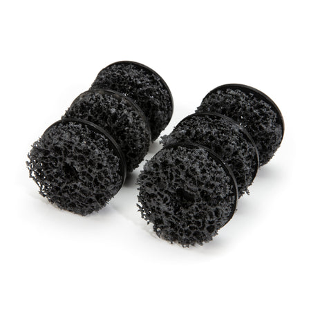 With the STEELMAN 99905-02 Replacement 2-Inch Diameter Wheel Stud, Hub, and Rotor Cleaning and Polishing Pad 6-Pack you can keep your wheel hub cleaning kit stocked and ready for use on any vehicle. These replacement pads are ideal for keeping rust from building up on hubs, rotors, and brake drums. When allowed to build up, rust on these parts can lead to wobbling due to improper alignment, uneven brake wear and rotor runout, and rusted lug nuts that can lead to improperly secured tires that check as torqued but are still loose on the wheel. These pads feature a durable nylon web to scour away rust and built-up road grime without damaging steel rotors, hub assemblies, and brake components like a wire brush or wheel and without the hazards of chemical cleaners. Each pad has a hook and loop backing that holds them tightly to the drill / low speed buffer adapter while still allowing easy removal and replacement when worn. Pack contains six (6) replacement 2-inch diameter pads for use with the STEELMAN 99905 Wheel Hub and Rotor Polishing Kit.