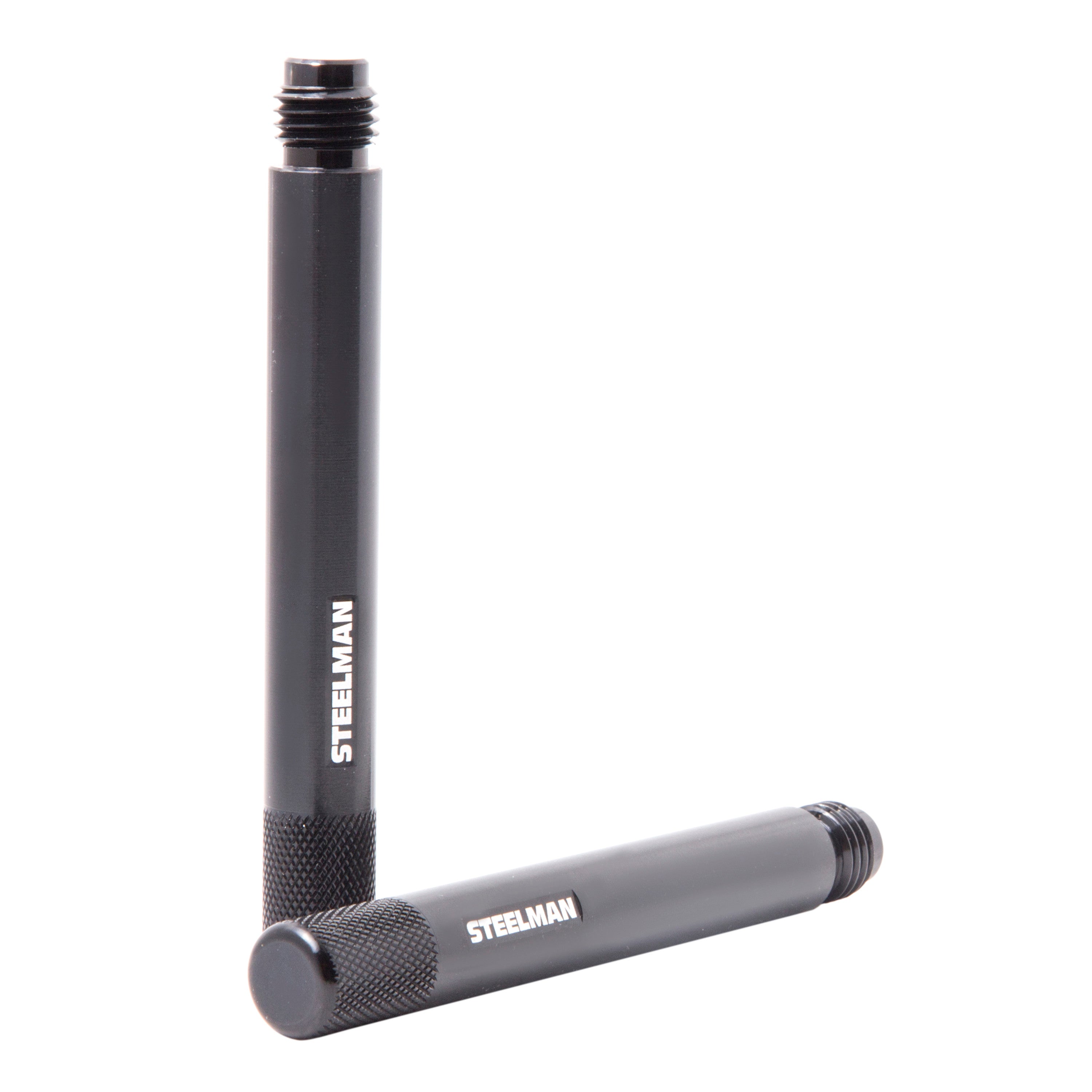 Save time and work more efficiently with a set of STEELMAN 78761 Black M12 x 1.5 Wheel Hangers. This handy pair of hangers are ideal for changing wheels on European vehicles that use lug bolts instead of studs and lug nuts. Prevent painful back strain caused from trying to hold a heavy wheel and tire in place while fumbling to get a lug bolt started to take away the load. This tool is constructed of durable anodized aluminum and designed to fit through the wheel's existing lug holes to allow easy, stress free tire mounting. Color coded black for easy identification this hanger is threaded M12 x 1.5 to fit select BMW, Mini, Mercedes, Saab, Smart, and Volkswagen vehicles. This set of 12.6mm (0.495-inch) diameter hangers can also be used to prevent accidental damage when removing your wheels.