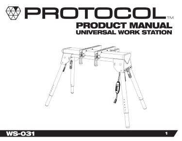 Power through your workload with the compact, efficiency-driven design of the PROTOCOL Equipment WS-031 Universal Workstation. Constructed of high-grade and corrosion-resistant, powder-coated steel, this stand has a 500 pound weight capacity and the adjustable tool mount brackets clamp securely onto the 32-inch wide top and work with most brands of miter saws and other bench-top tools. The tubular, powder-coated steel legs are capped for use on finished surfaces and have quick-release levers for easy setup and take-down. They are also adjustable in 1-inch increments allowing you to customize the height of your workstation from 28 to 33-inches.